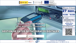Programa Taller: Se expondrán todas las soluciones para la gestión de los datos de los tacógrafos digitales: OPENTACH: Gestión, análisis y custodia de datos Gestión de los datos de los tacógrafos digitales, descarga, alojamiento y tratamiento de los ficheros digitales, para cumplir con las obligaciones de descarga y almacenamiento de los datos de los tacógrafos digitales. Control veraz de las actividades realizadas por vehículos, conductores e infracciones cometidas por los mismos. ROBKEY: Descarga de datos del tacógrafo digital y de…